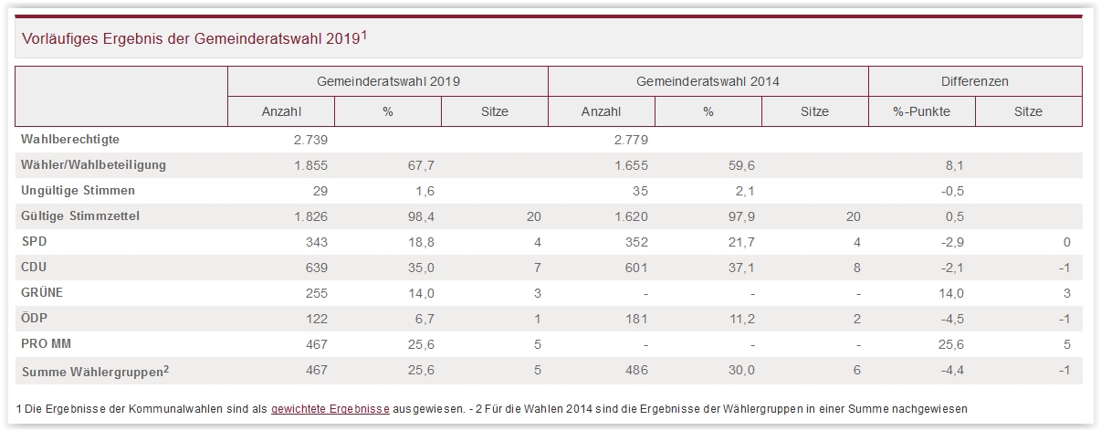 Wahlergebnis Kommunalwahlen Münstermaifeld 2019